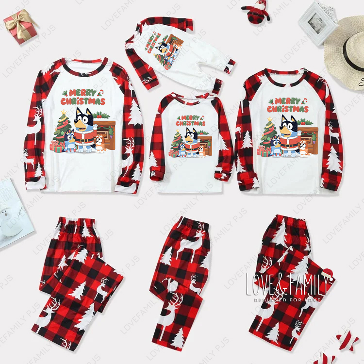 Merry Christmas Bluey Print Family Matching Pajamas Sets