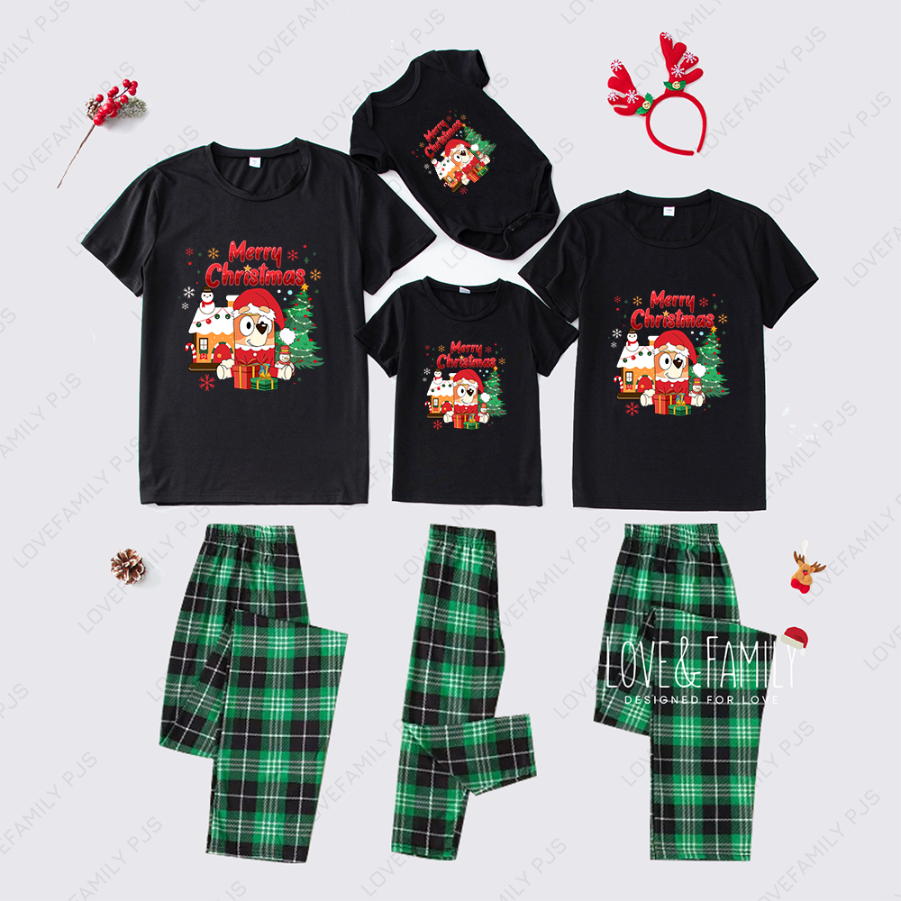 Merry Christmas Bluey Short Sleeve Green Pajamas Sets