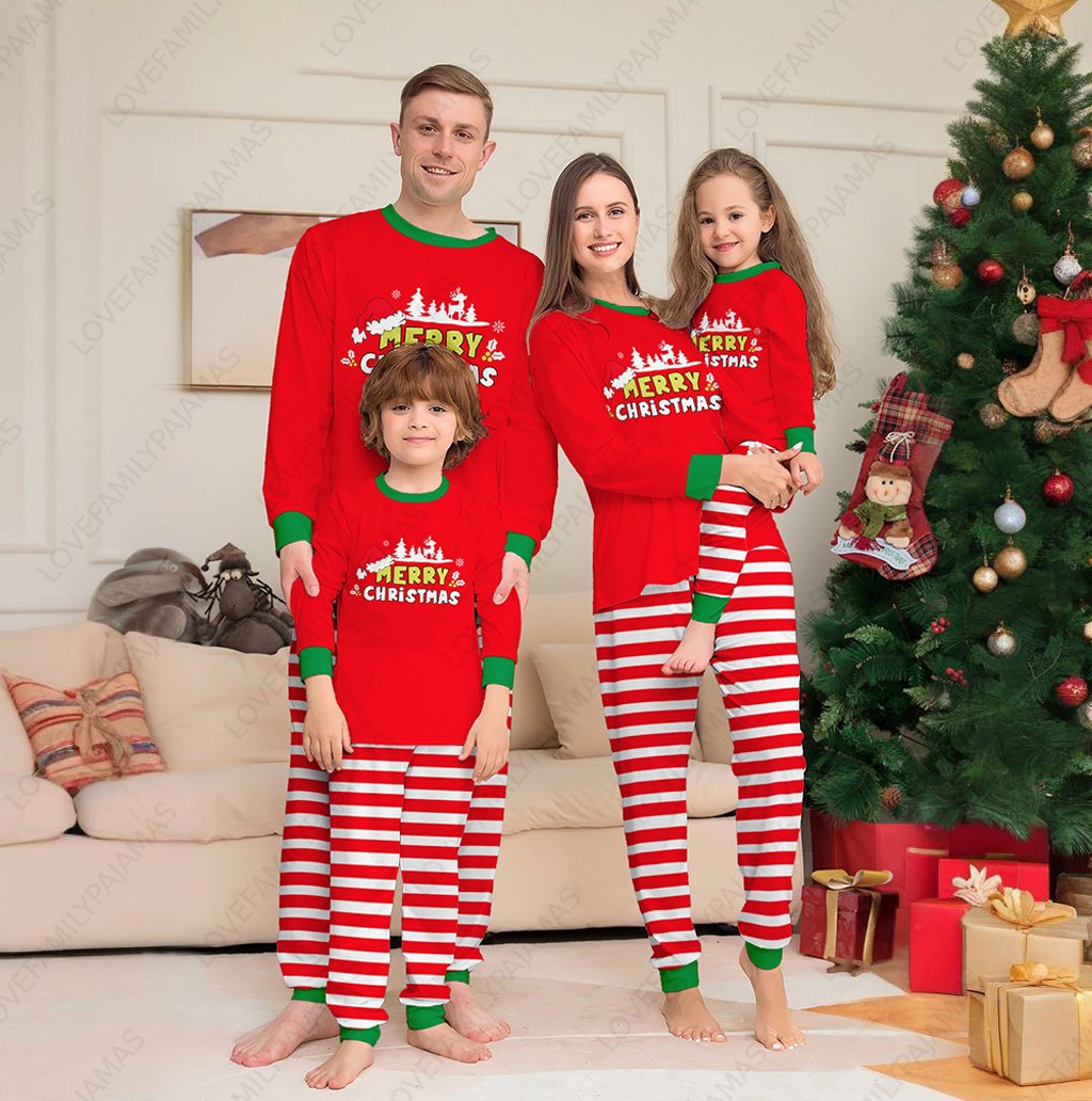 Merry Christmas Family Pajamas Red Top & Stripes Pant Holiday Sleepwear Sets