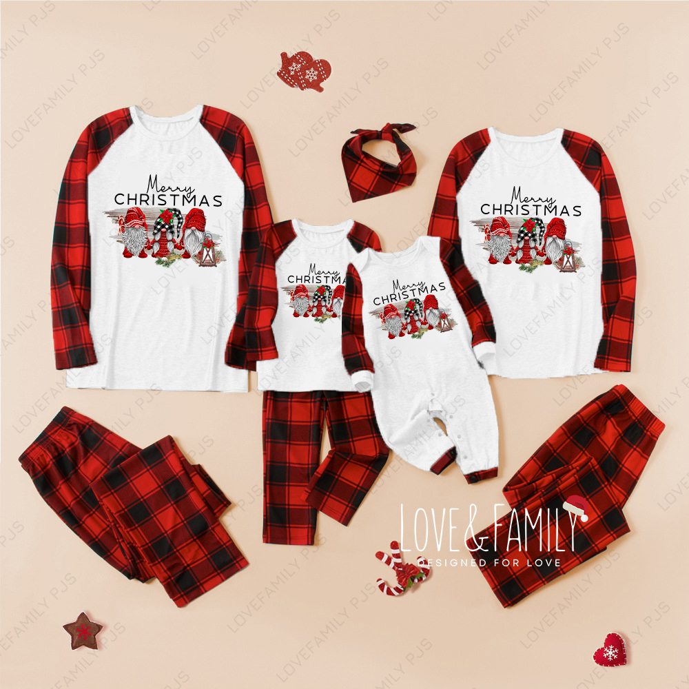 Merry Christmas Gnomes Family Buffalo Plaid Pajamas Sets(White)