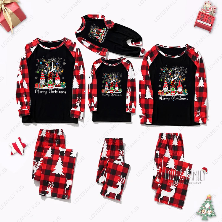 Merry Christmas Gnomes Print Holidays Family Matching Pajamas Set