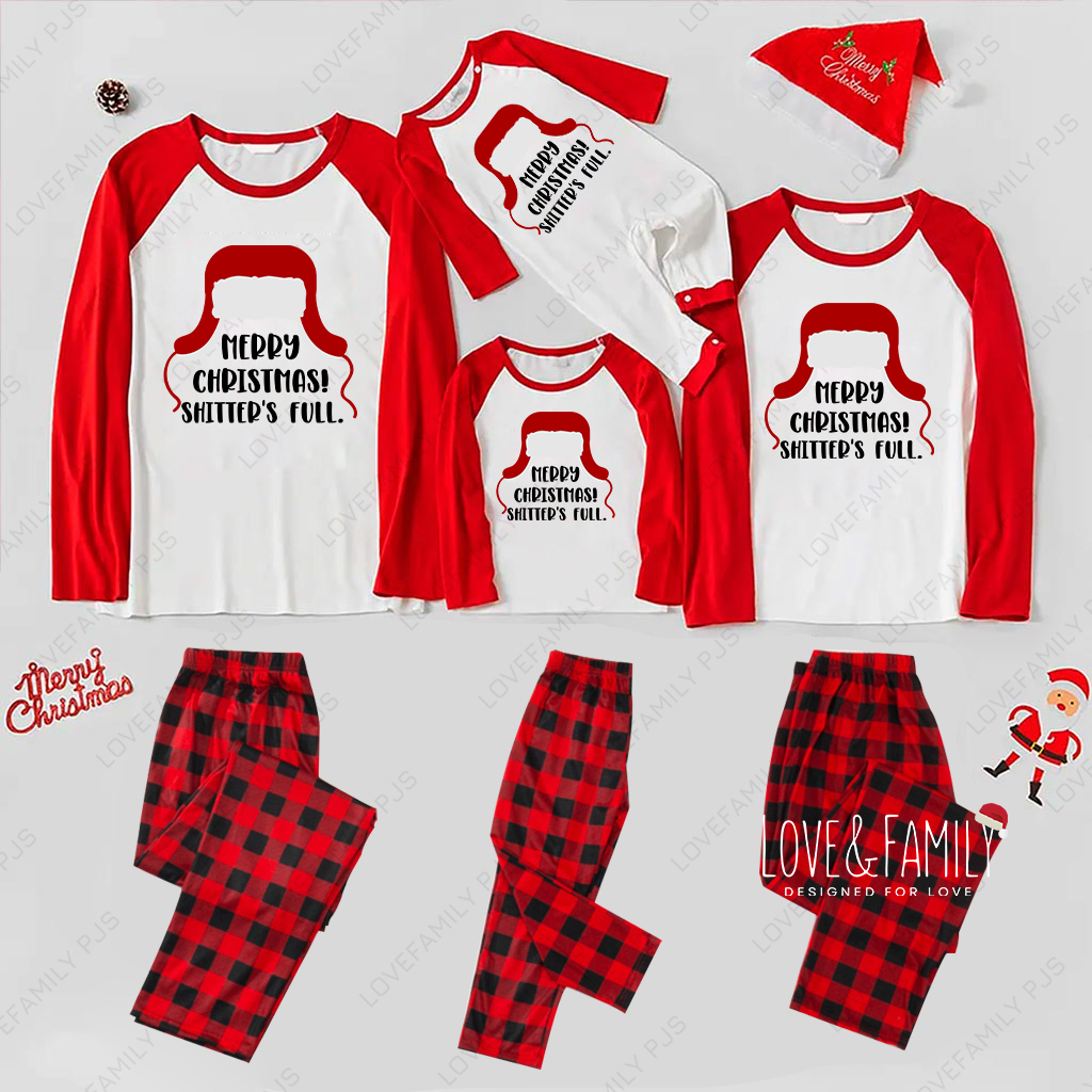 Merry Christmas Shitter's Full Family Pajamas Red Plaid PJs Sets