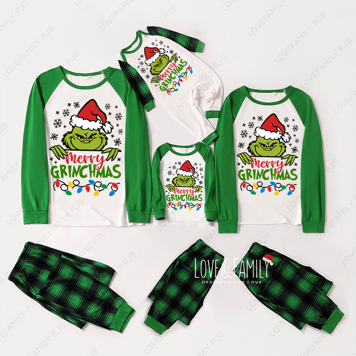 Merry Grinchmas Family Pajamas Christmas Green Plaid PJs Sets