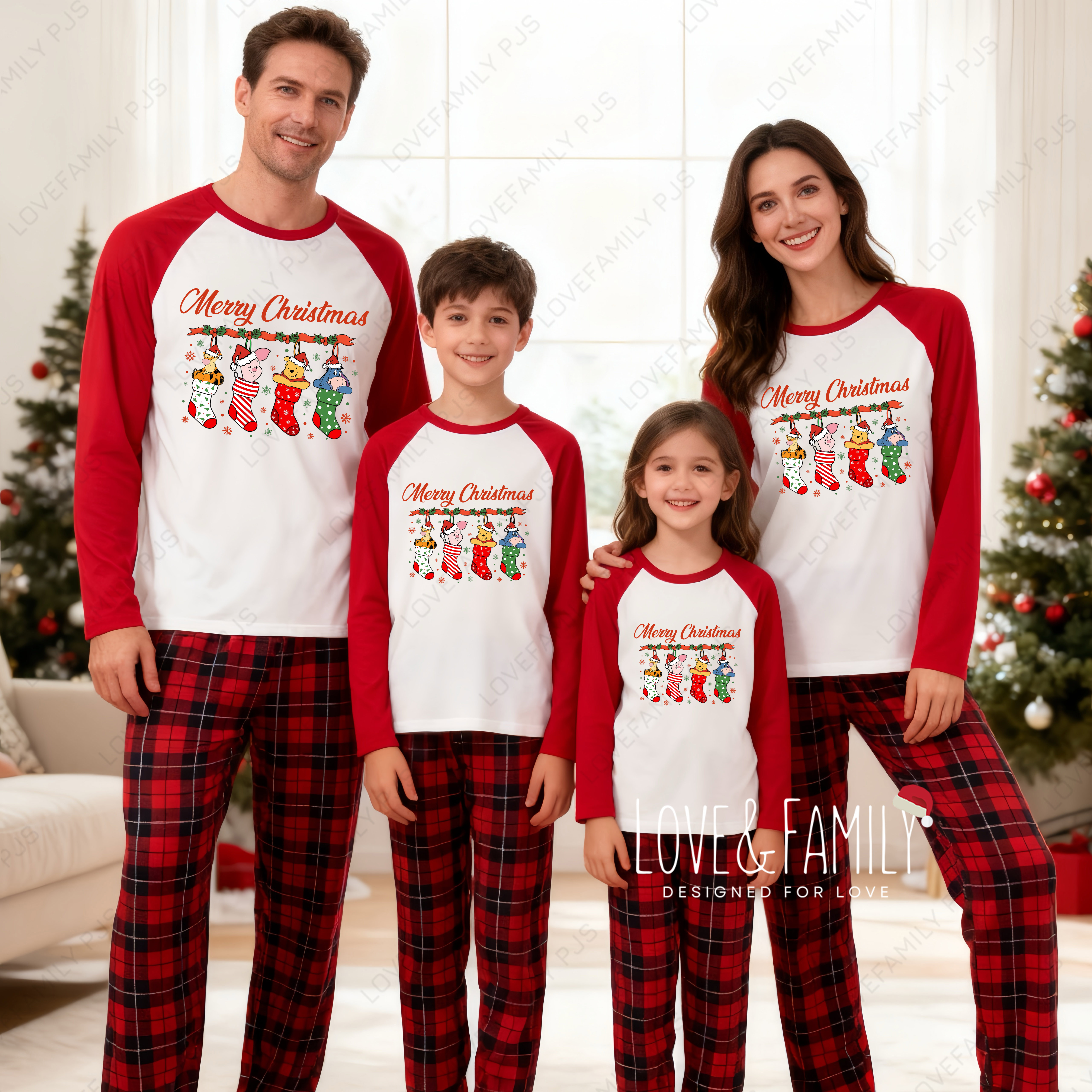 Merry Xmas Matching Sleepwear Winnie-the-Pooh Holiday Family Pajamas