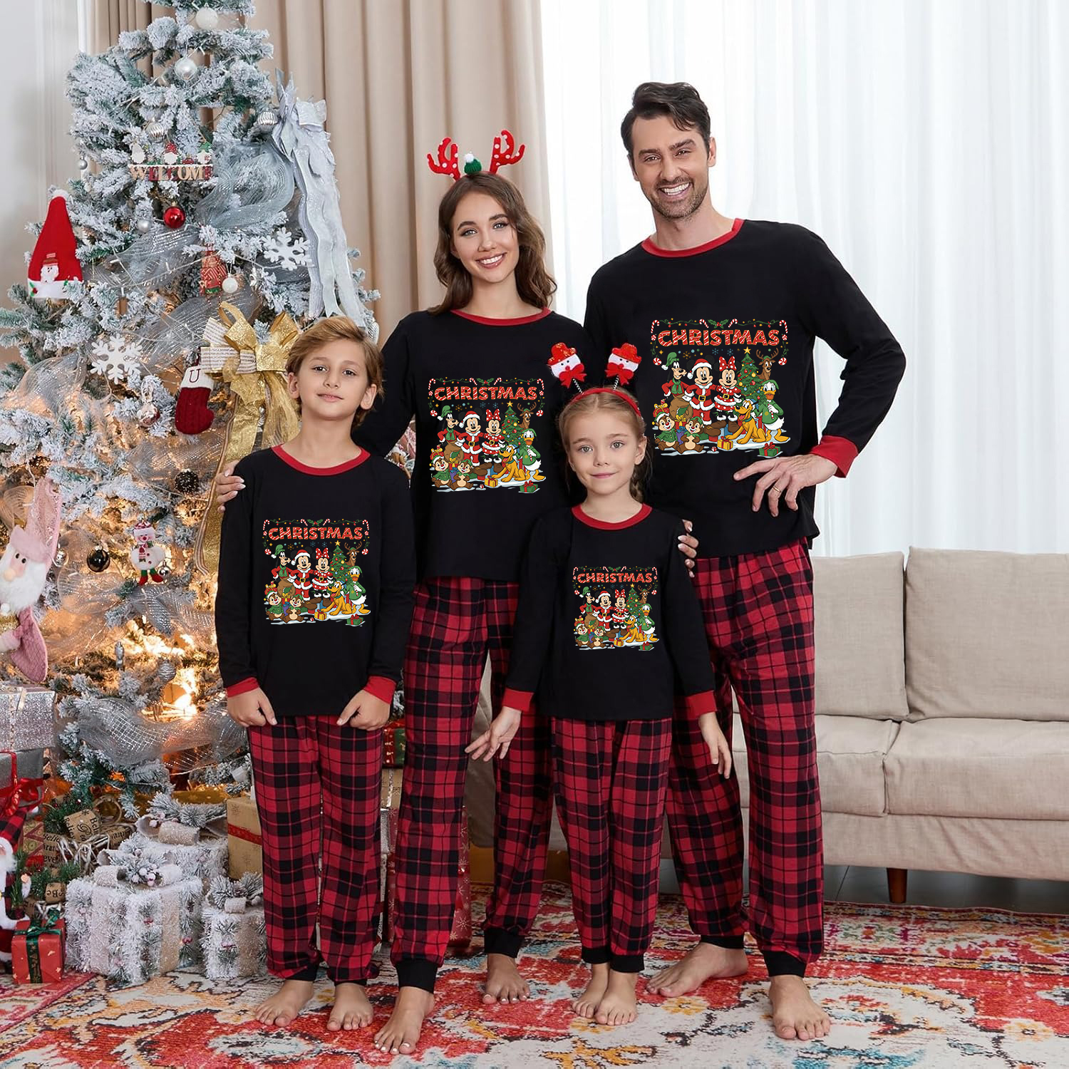 Mickey Christmas Family Pajamas Disney Characters Cozy Holiday PJs Set