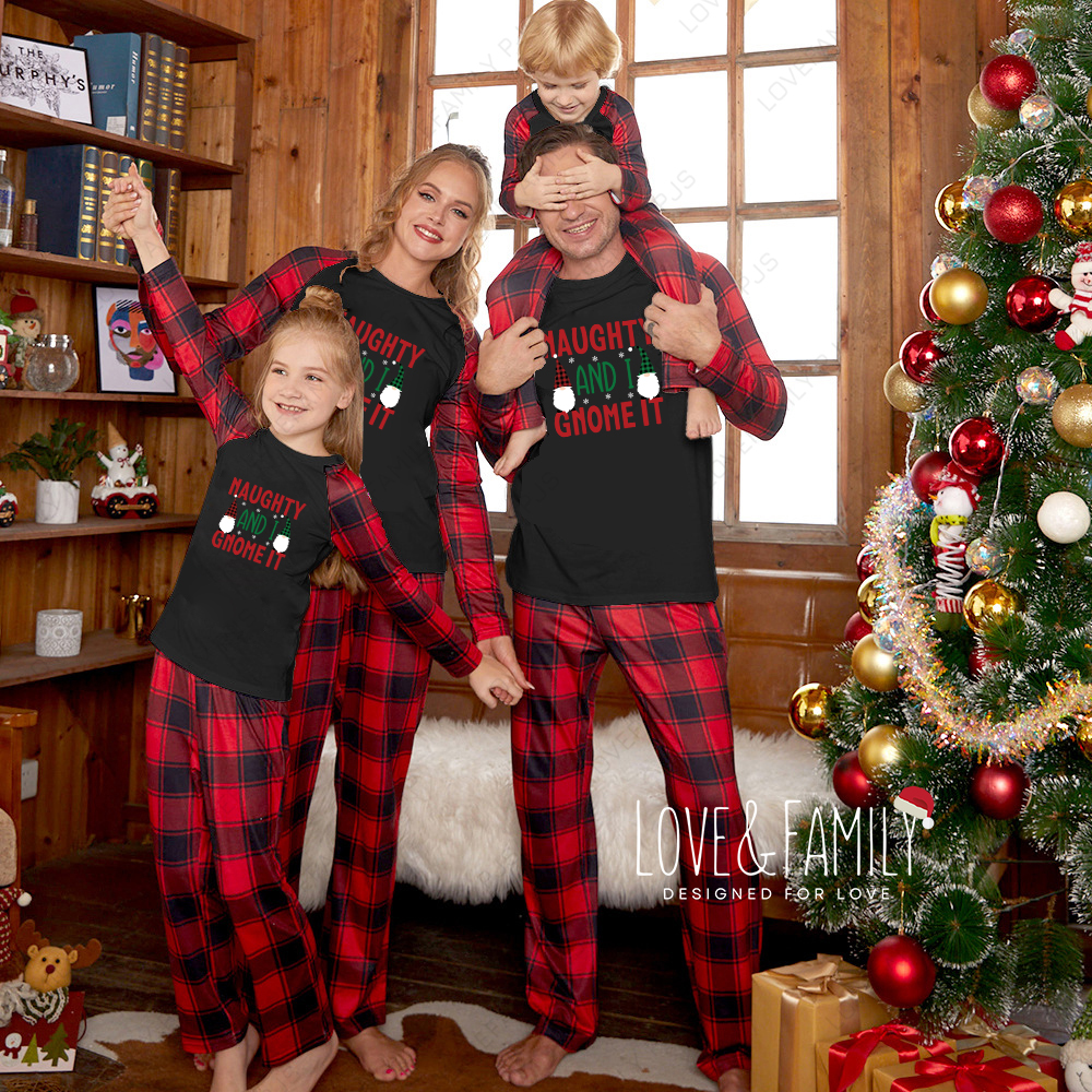 Naughty Im Gnome It Christmas Family Pajamas Sets(Black)