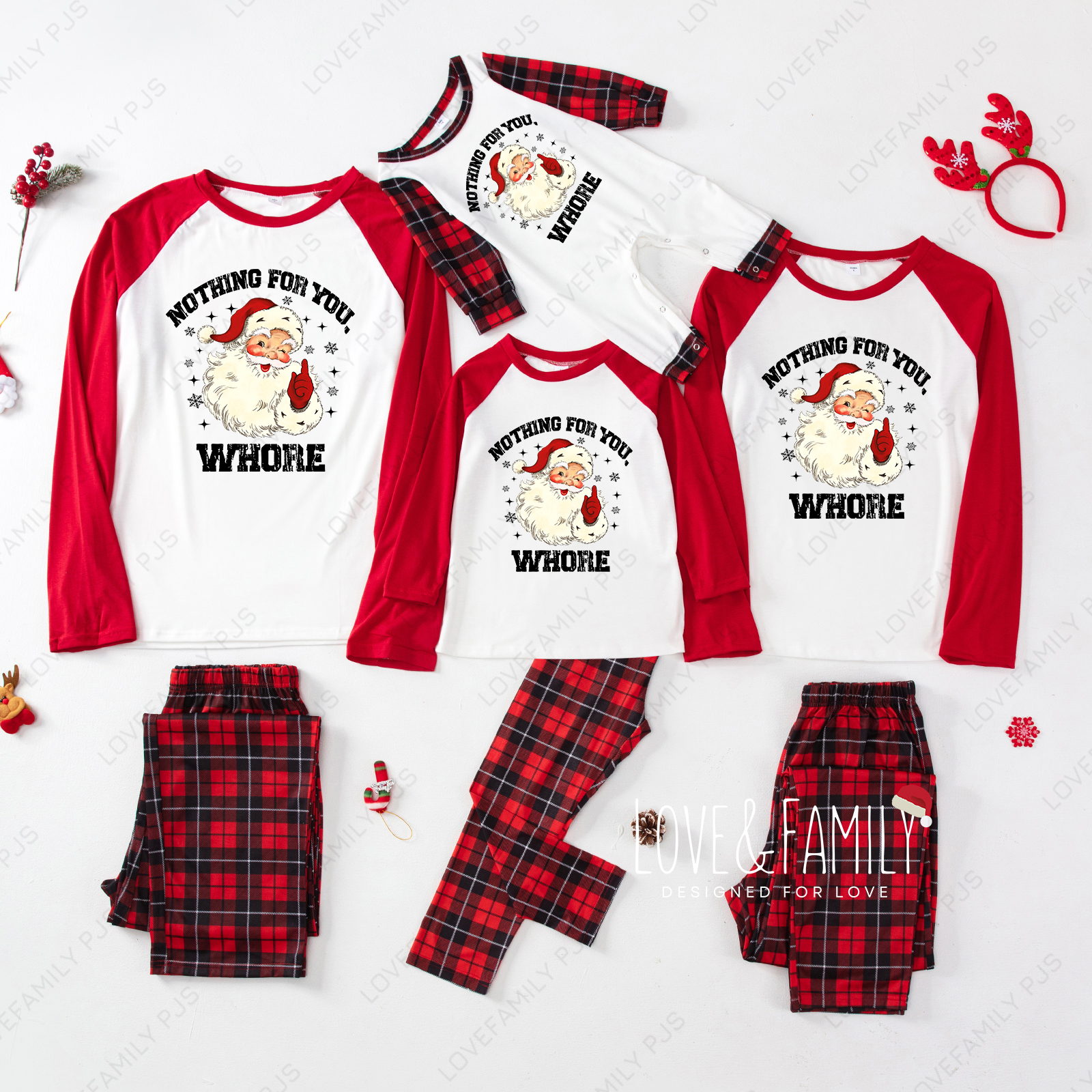 Nothing for you,Whore! Santa Claus Family Pajamas Red Plaid PJs Sets
