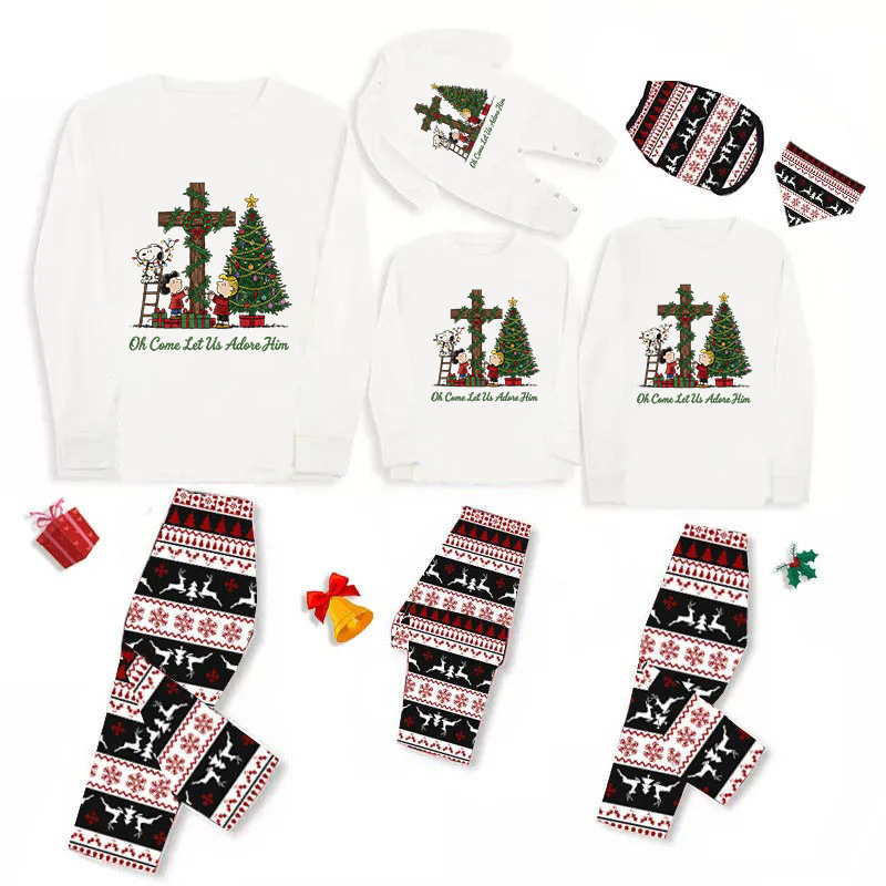 Oh Come Let Us Adore Him Xmas Matching Pajamas Peanuts Family PJs Set