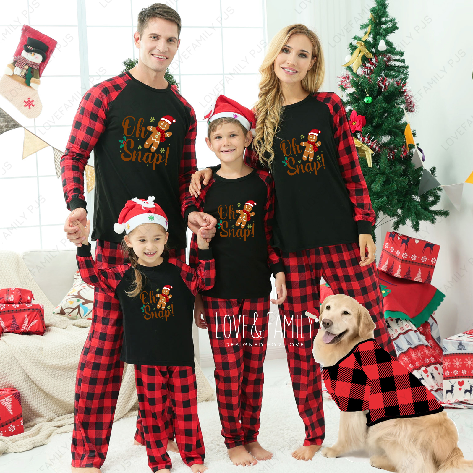 Oh Snap! Christmas Gingerbread Man Buffalo Plaid Family Pajamas Sets