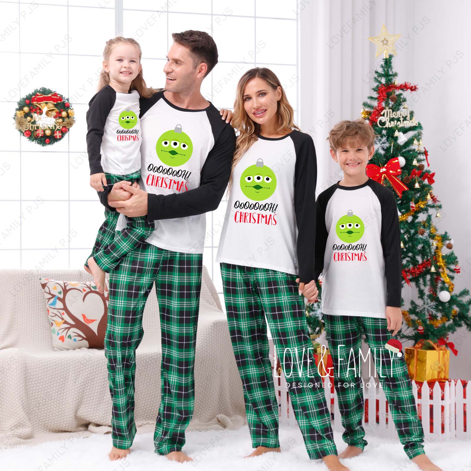 Ooooooh Christmas Disney Green Plaid Matching Pajamas Sets