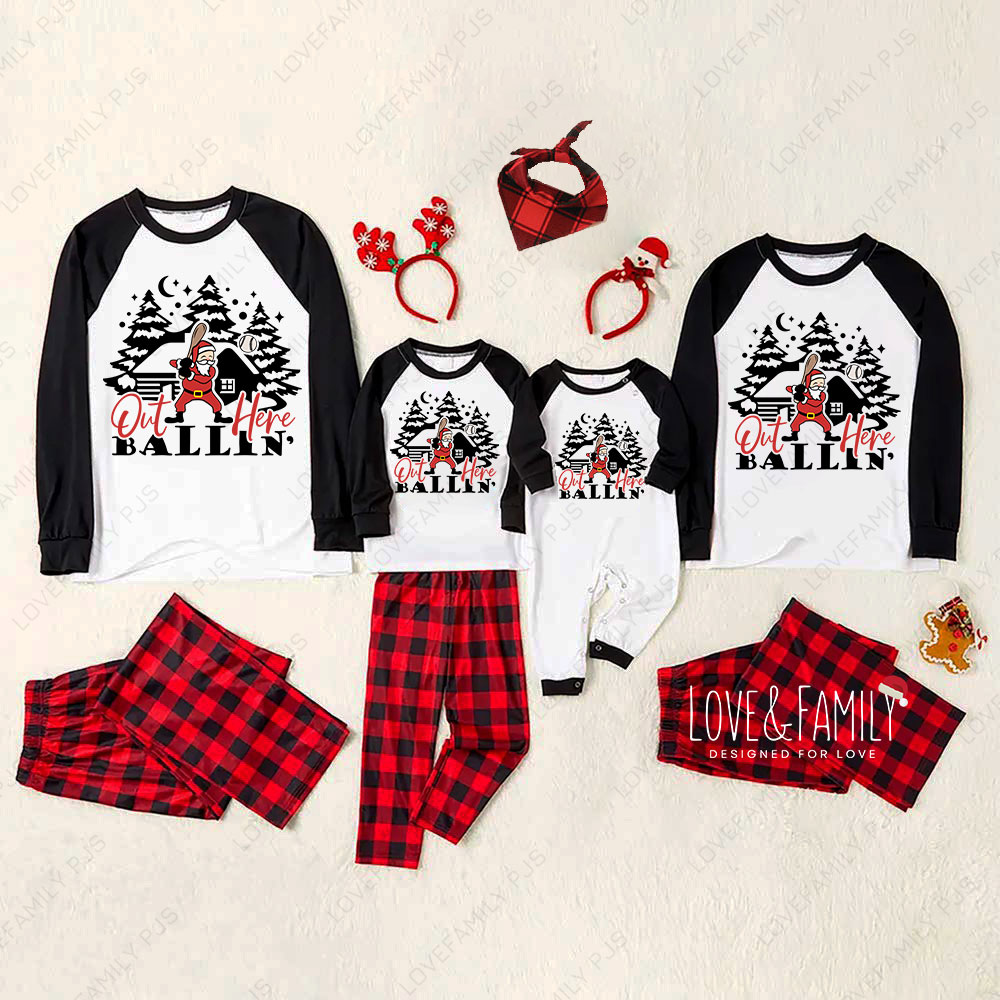 Out Here Ballin' Baseball Print Black-Sleeved Christmas Family Pajamas