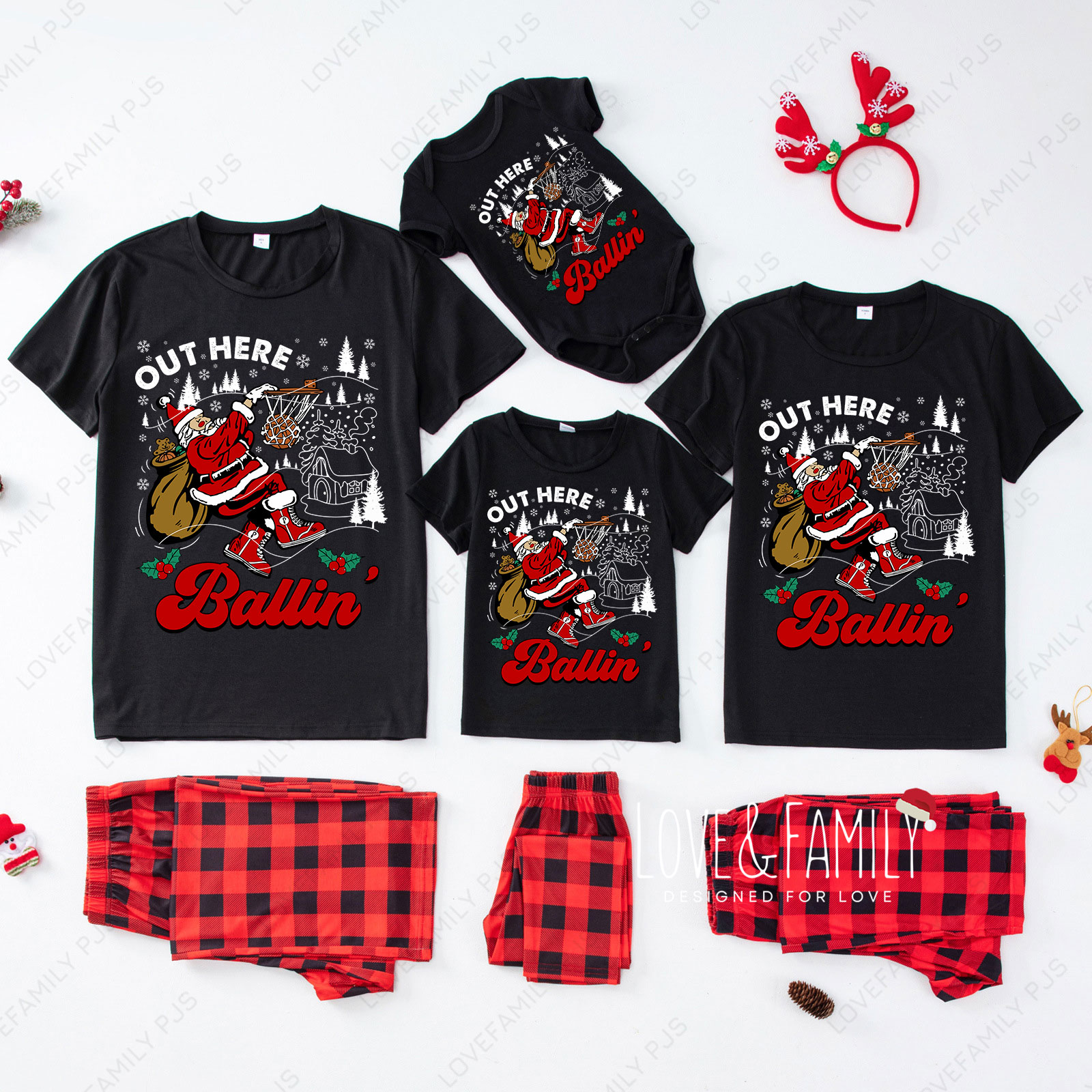 Out Here Ballin' Cute Santa Print Family Christmas Matching Pajamas