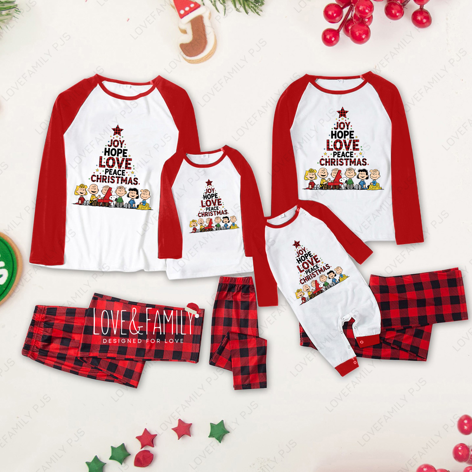 Peanuts Christmas Alphabet Tree Family Pajamas Red Plaid PJs Set