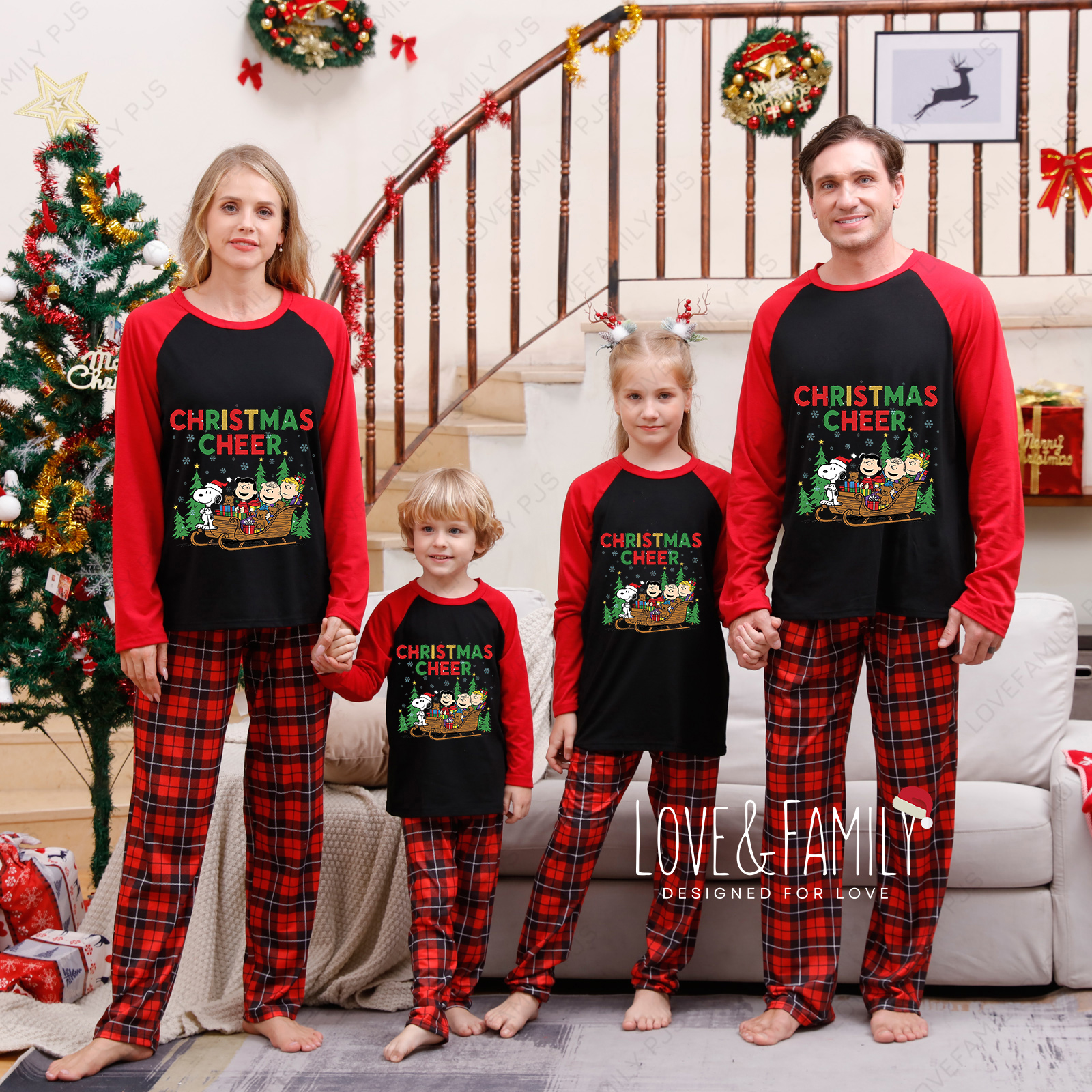 Peanuts Christmas Cheer Family Pajamas Charlie Brown Holiday PJs Set