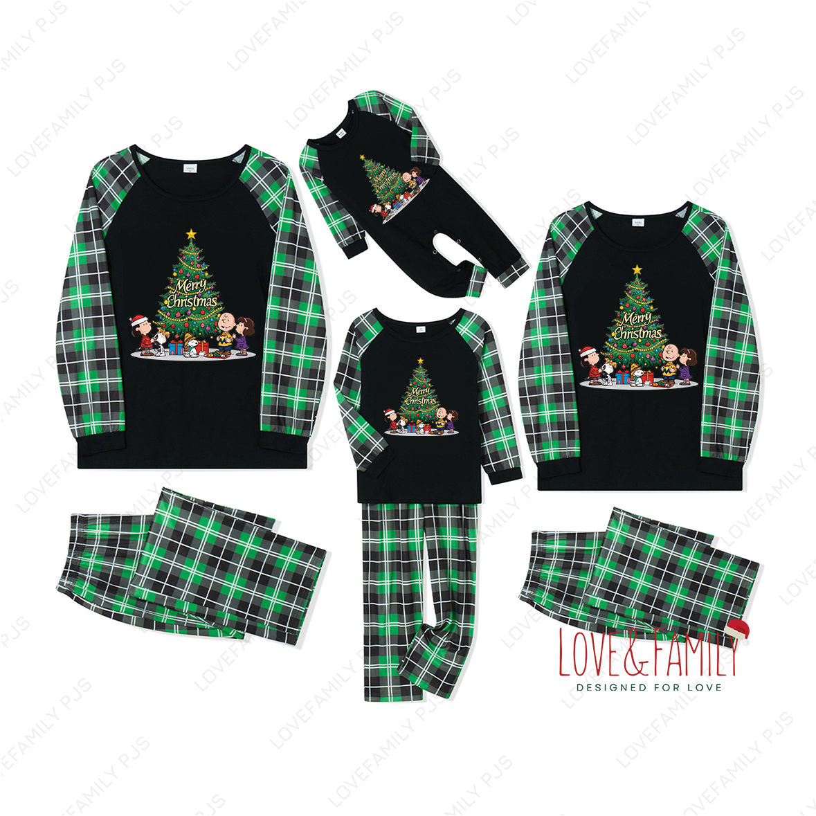 Peanuts Green Plaid Merry Christmas Cozy Family Matching Pajamas