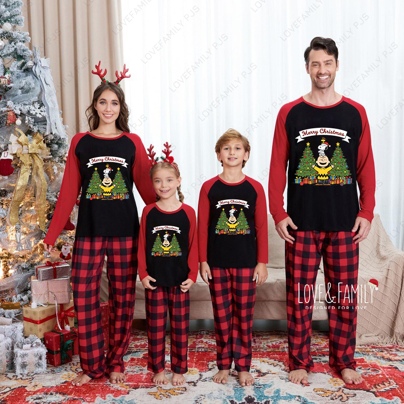Peanuts Plaid Christmas Family Pajamas Christmas Snoopy Cozy Nightwear Set