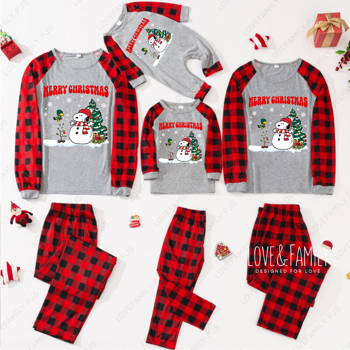 Peanuts Snoopy Merry Christmas Family Buffalo Plaid PJs Sets(Gray)