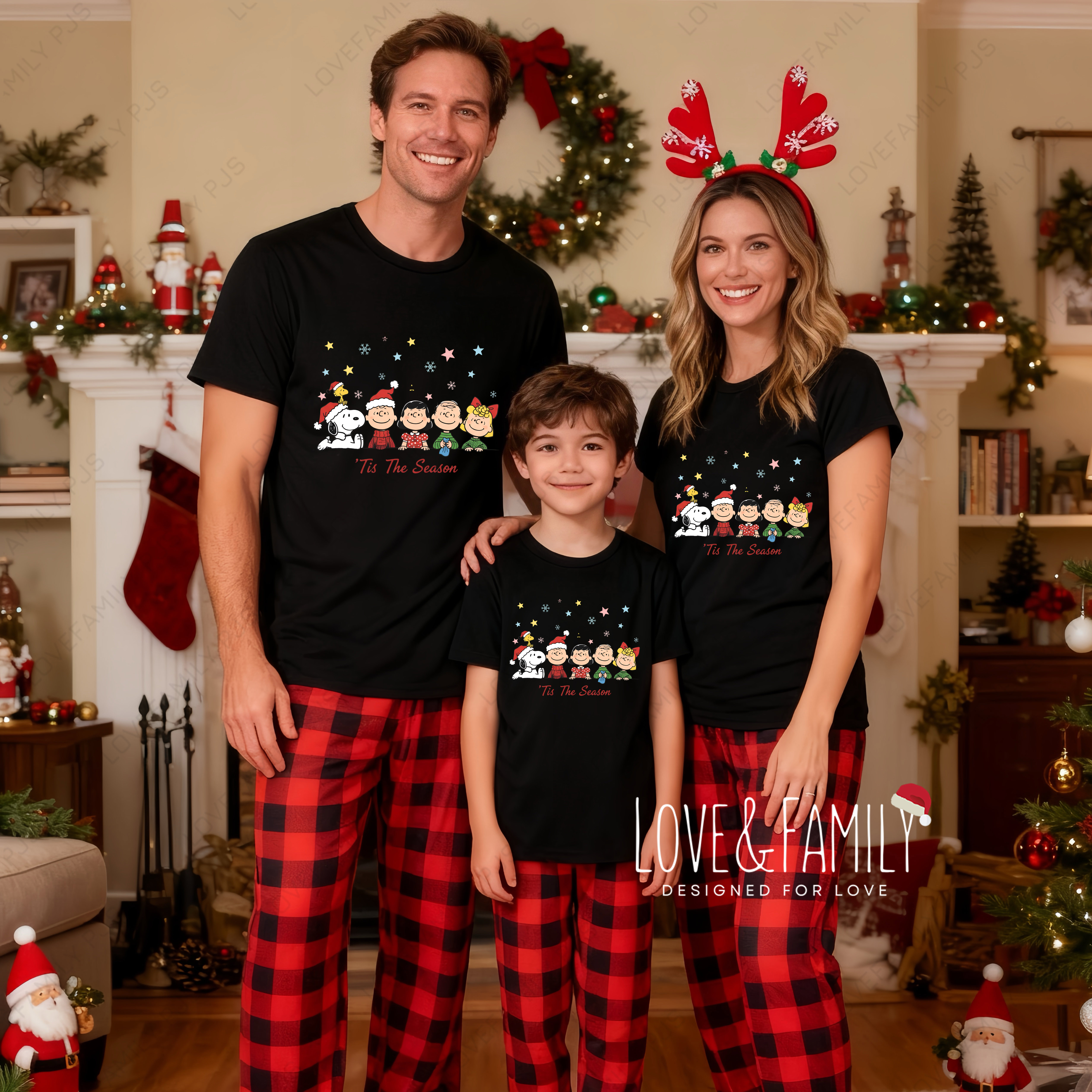 Peanuts 'Tis The Season Xmas Cozy Family Pajama Red Plaid Nightwear Set