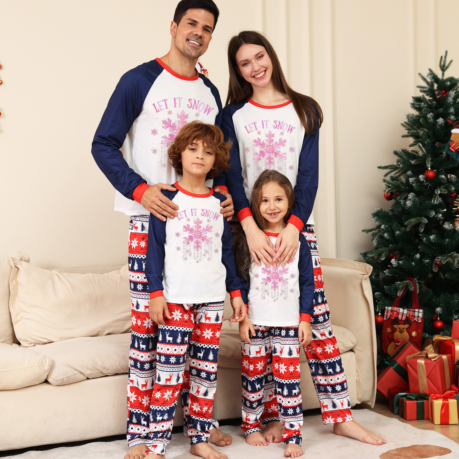 Pink Snowflake Print Let It Snow Christmas Matching Pajamas