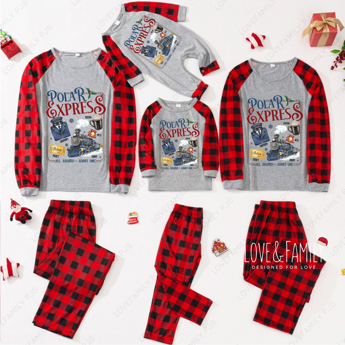 Polar Express' Features Christmas Family Pajamas Gray Believe PJs Set