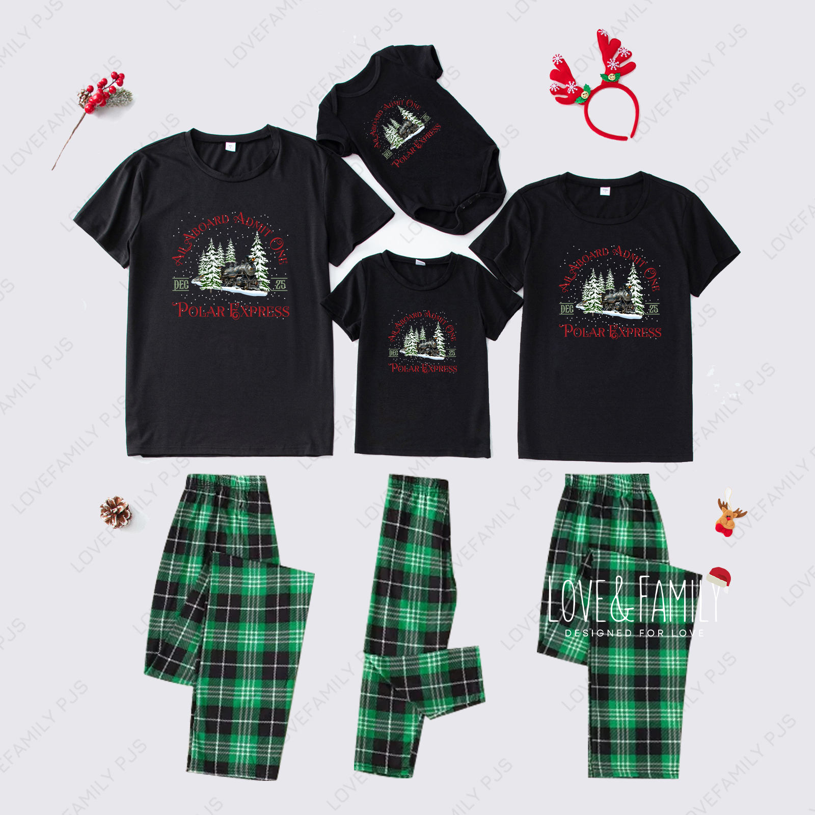 Polar Train Christmas Family Matching Pajamas Short Sleeve Green PJs Sets