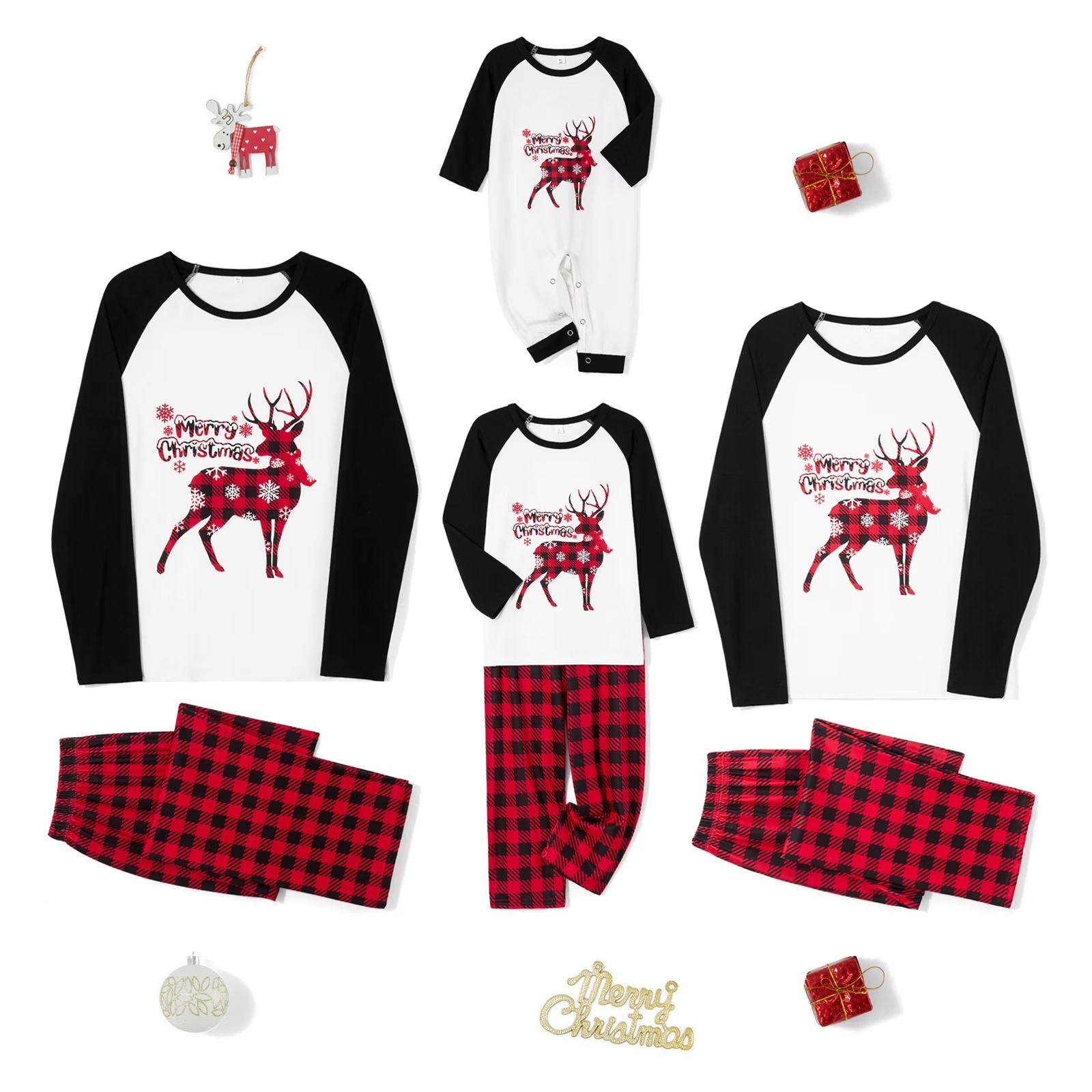 Reindeer Christmas Sleepwear Set Holiday Plaid Matching Pajamas