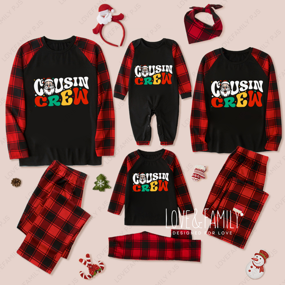 Santa Cousin Crew Buffalo Plaids Family Pajamas Sets(Black)