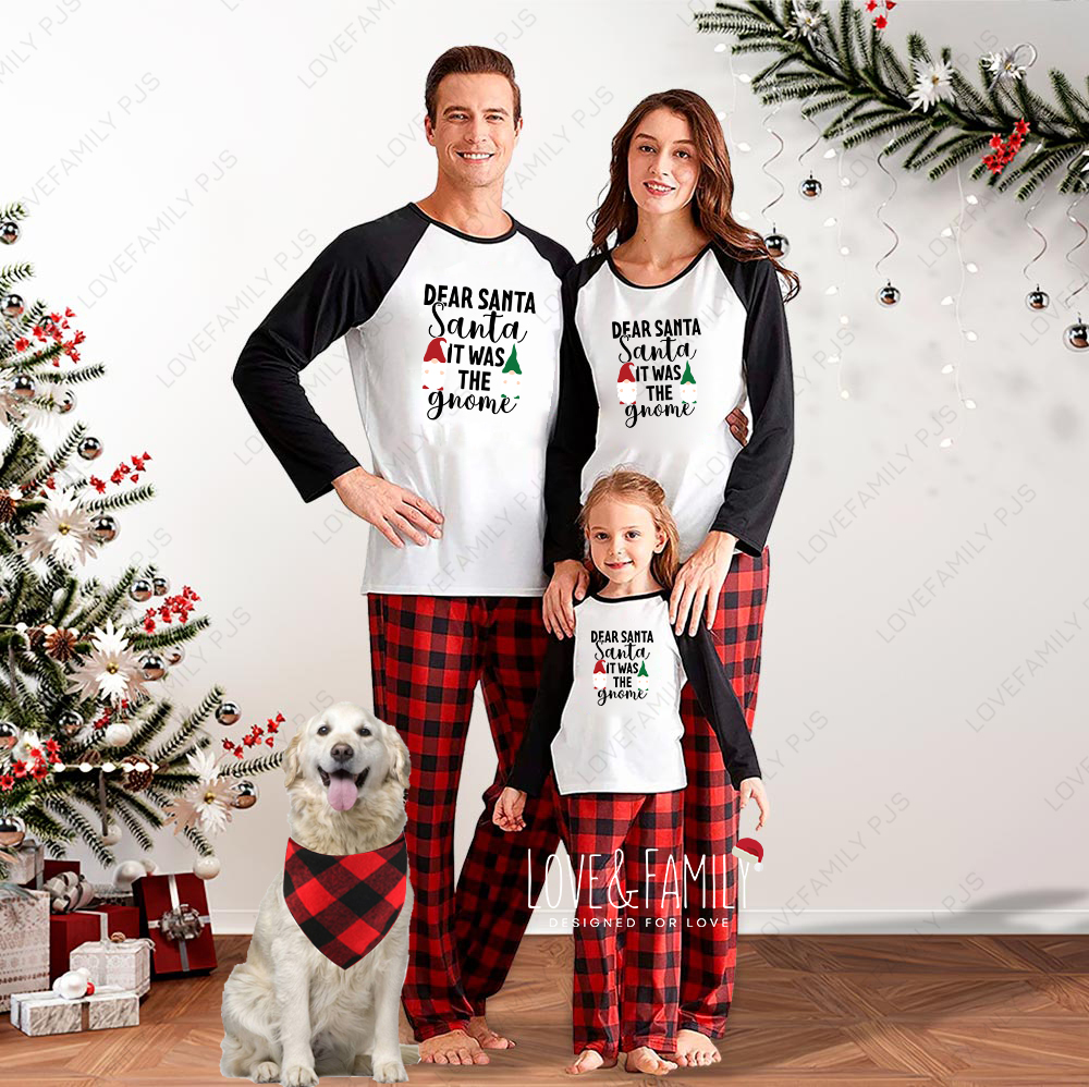 Santa It Was The Gnome Christmas Family Pajamas Red Plaid PJs Sets