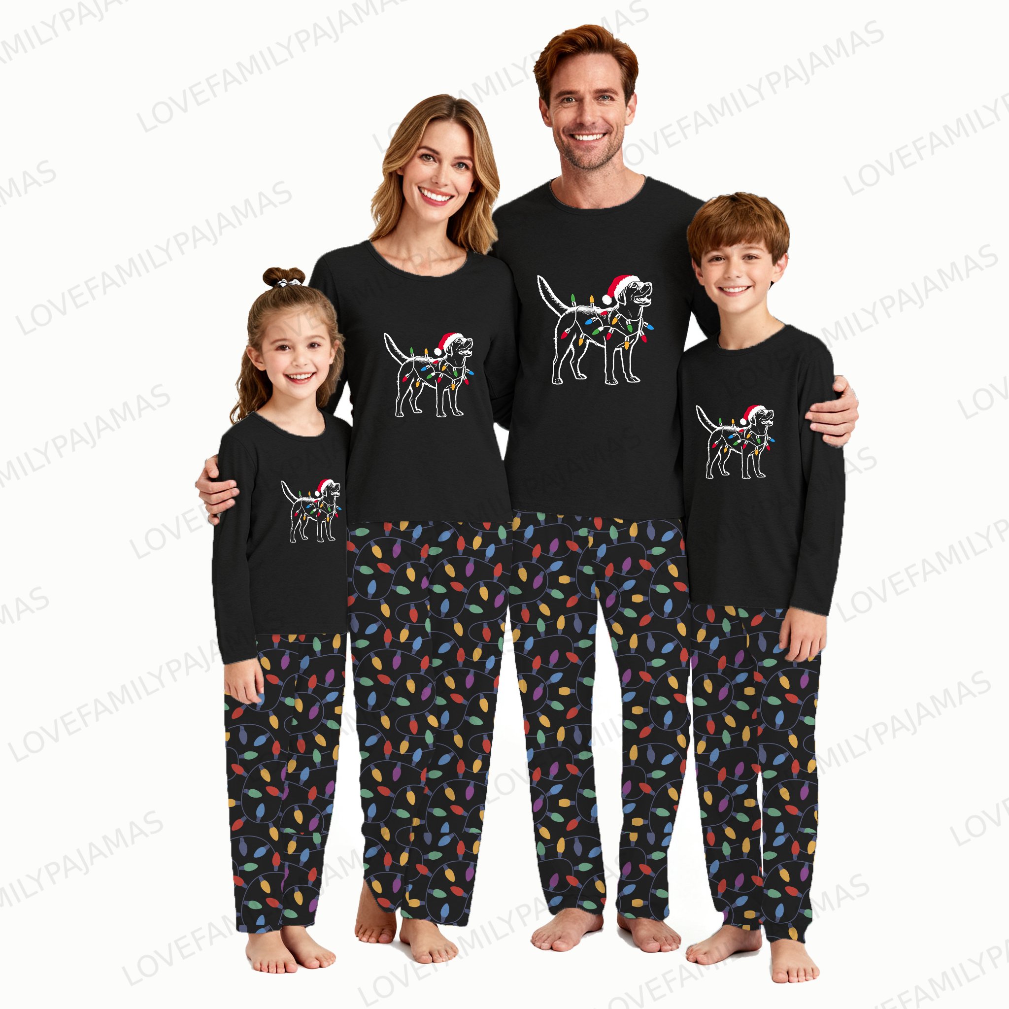 Santa Labrador Retriever Christmas Lights PJs with Pockets
