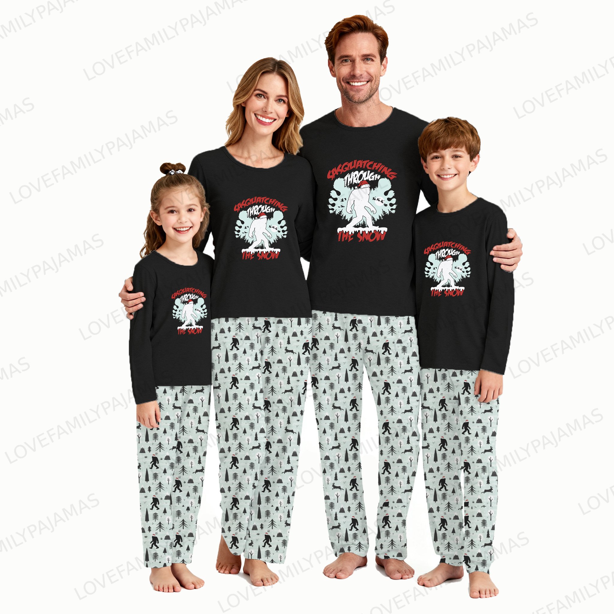 Sasquatching Through The Snow Bigfoot Family Pajamas with Pockets