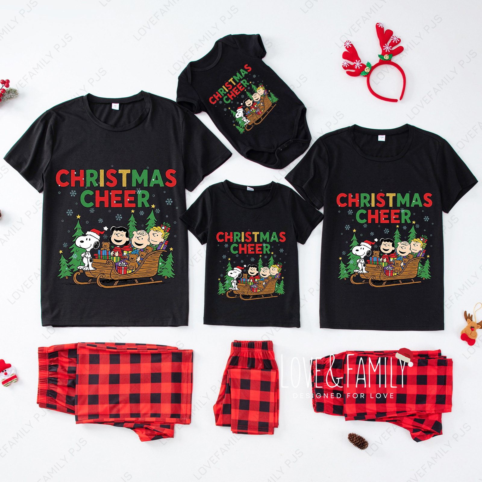Snoopy Christmas Cheer Family Pajamas Peanuts Cute Holiday Sleepwear Set
