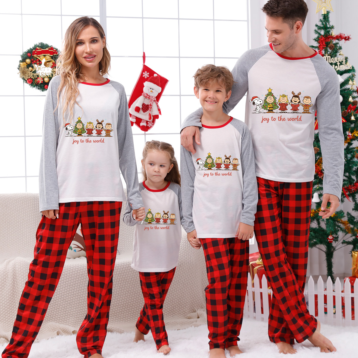 Snoopy Joy To The World Xmas Family Pajamas Peanuts Cozy Holiday PJs Sets