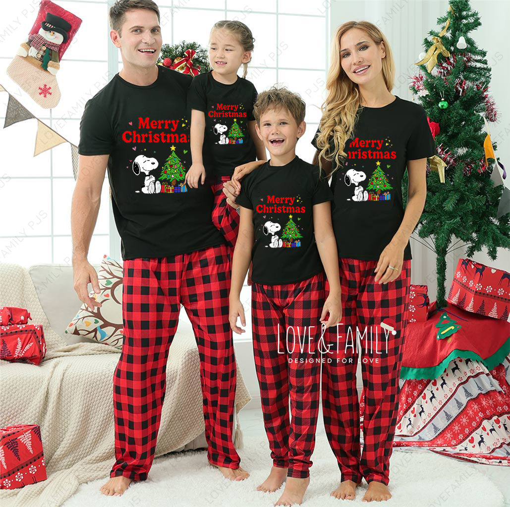 Snoopy Merry Christmas Cute Family Pajamas Peanuts Holiday Sleepwear Set