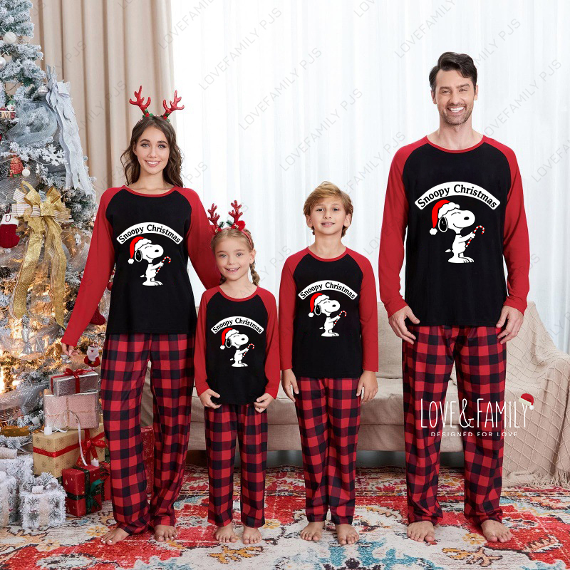 Snoopy Print Christmas Family Pajamas Peanuts Holiday PJs Sets