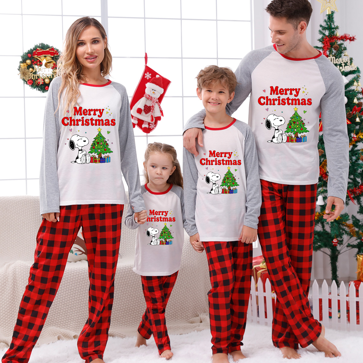Snoopy Print Merry Christmas Family Pajamas Peanuts Holiday PJs Sets