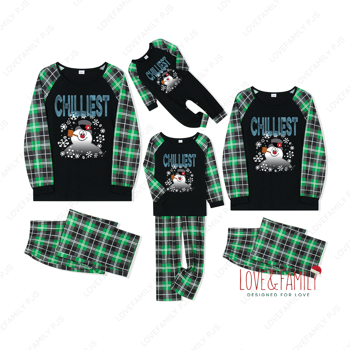 Snowman Green Plaid Chilliest Christmas Family Matching Pajamas
