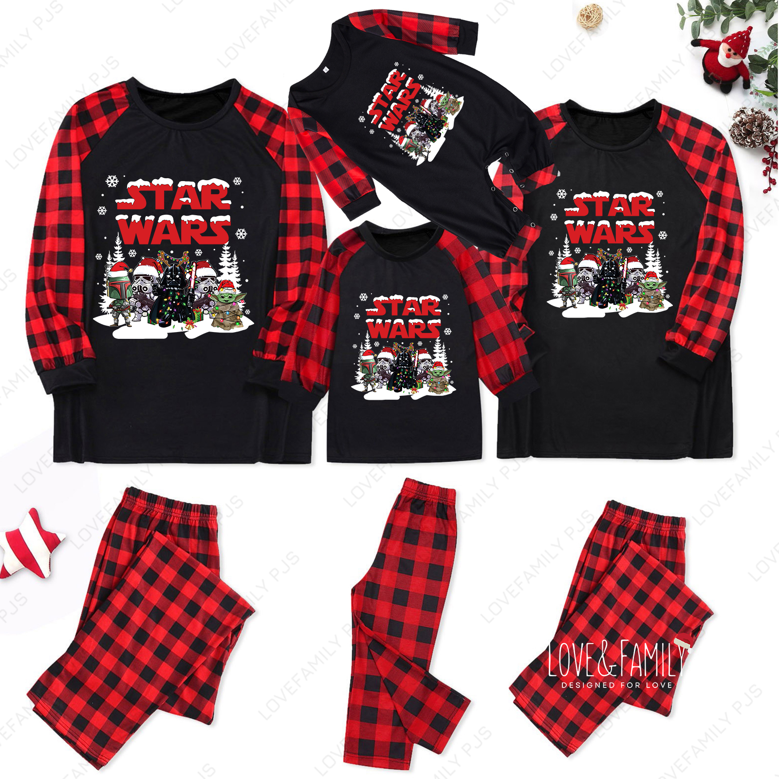 Star Wars Christmas Family Pajamas Red Plaid Splice PJs Set