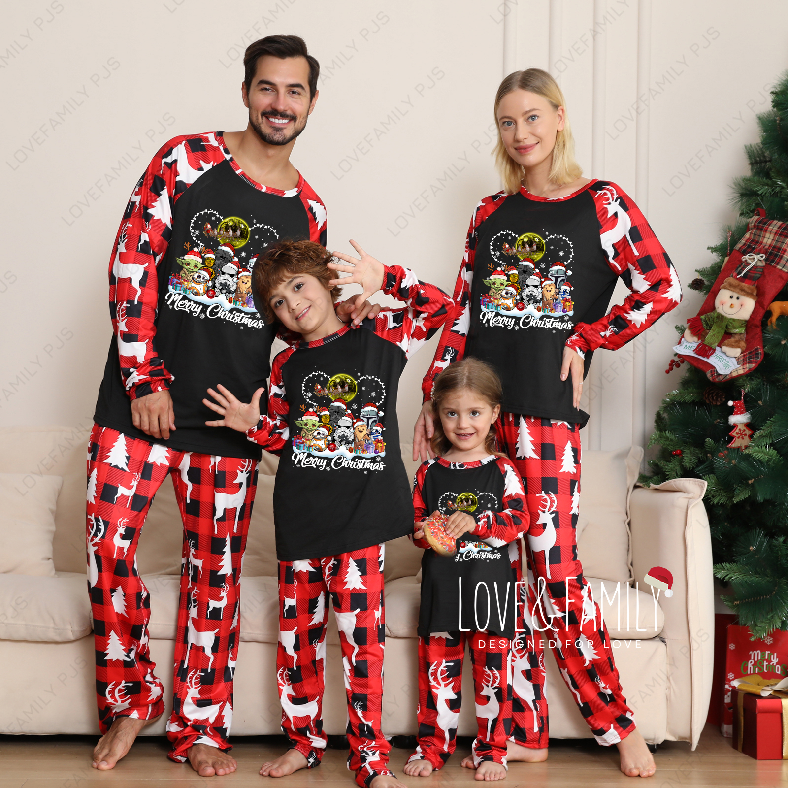 Star Wars Merry Xmas Family Pajamas Robots Red Plaid Nightwear Set