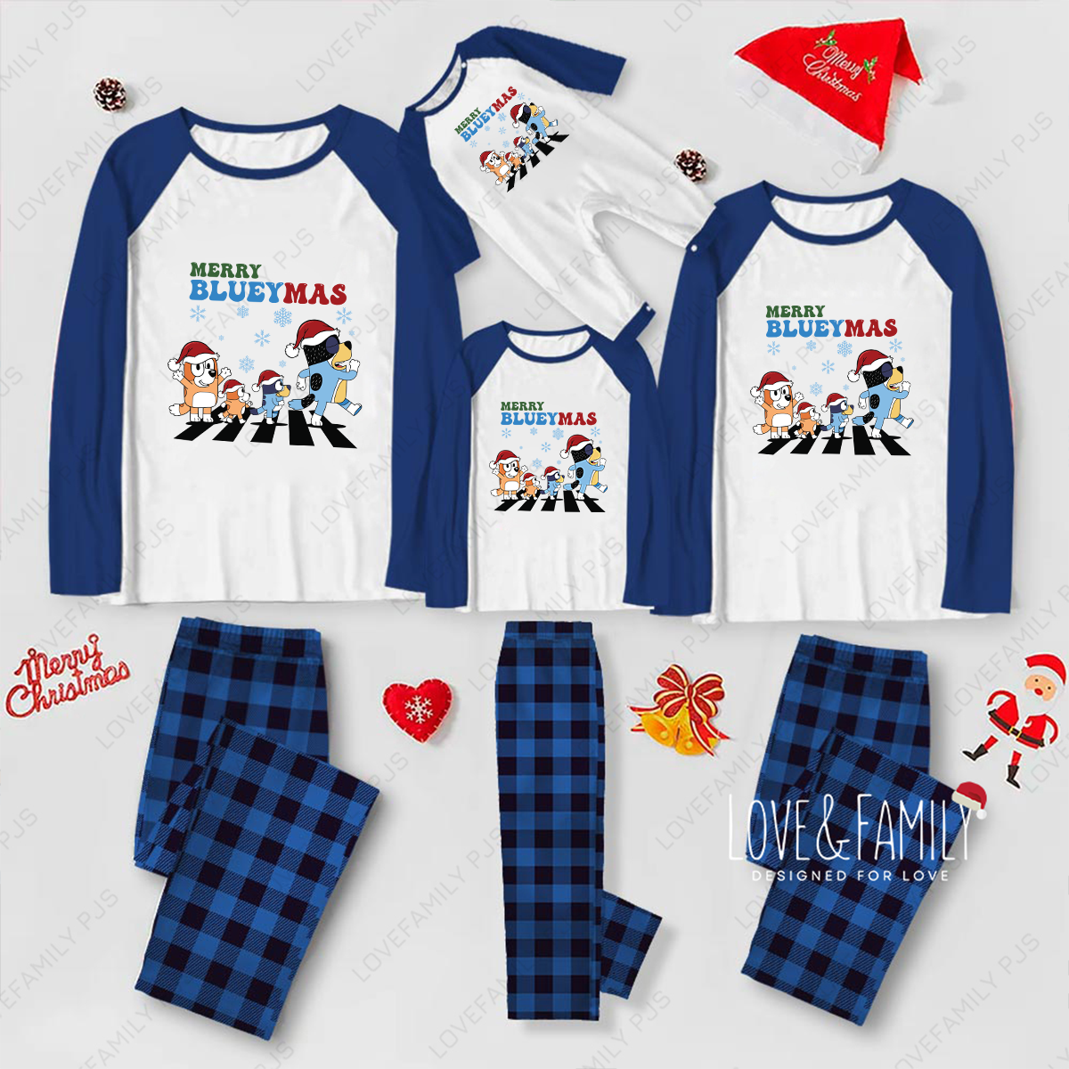 The Beatles Bluey Christmas Family Matching Blue Plaid Pajamas Set
