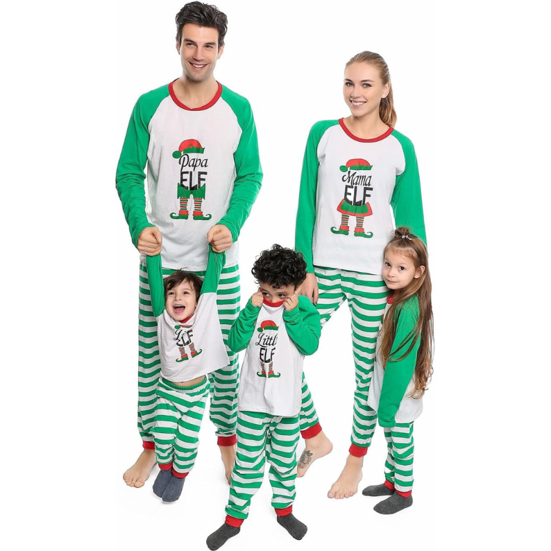 The Elf Green Striped Christmas Family Matching Pajamas