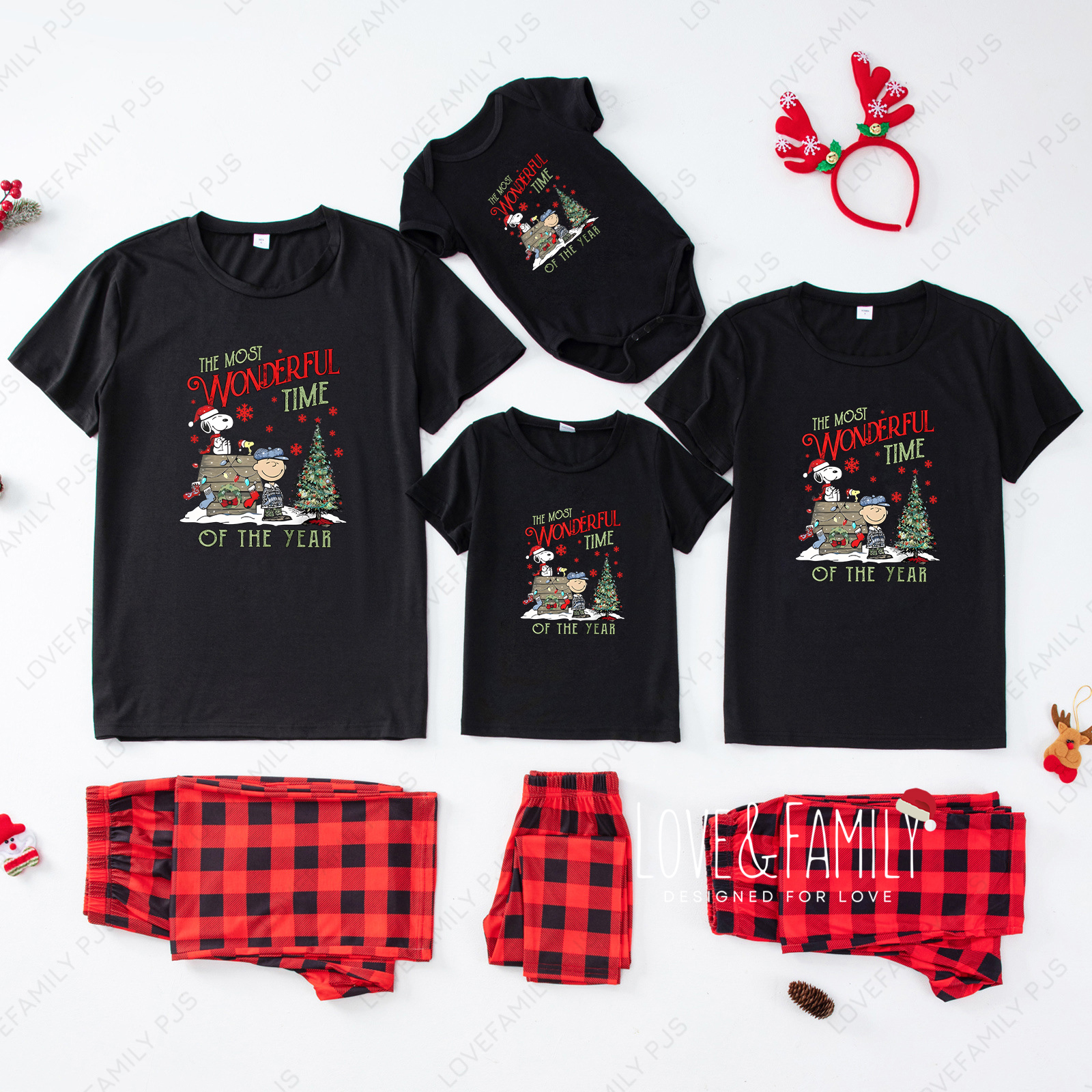The Most Wonderful Time Of The Year Snoopy Family Short Sleeve Pajamas Sets