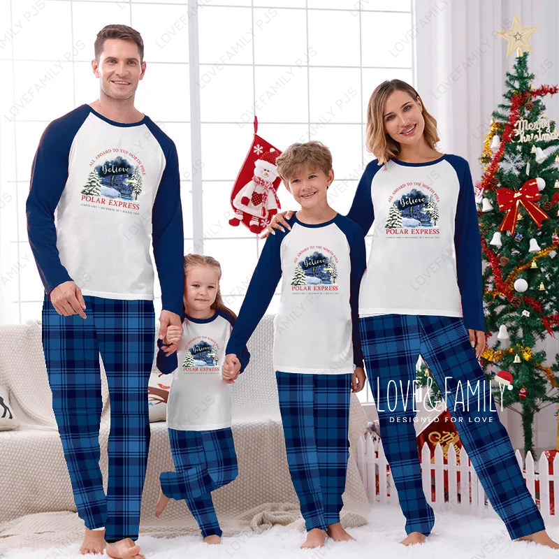 The Polar Express Believe Christmas Family Matching Pajamas Blue Plaid PJs Sets