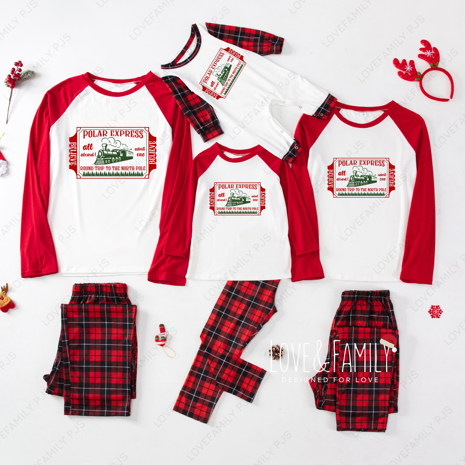 The Polar Train Christmas Family Matching Red Plaid Pajamas Sets