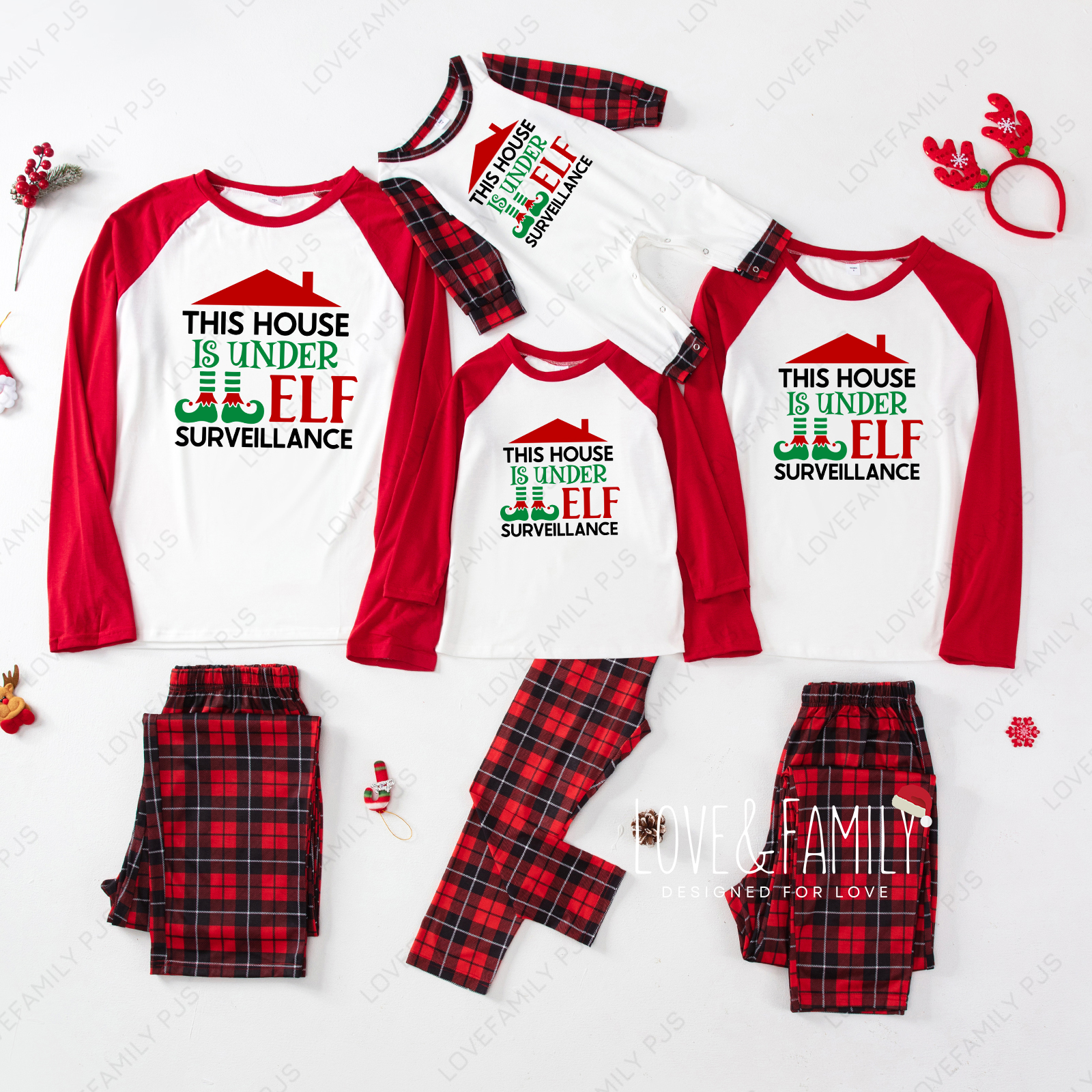This House Is Under ELF Surveillance Family Red Plaid Matching Pajamas Sets