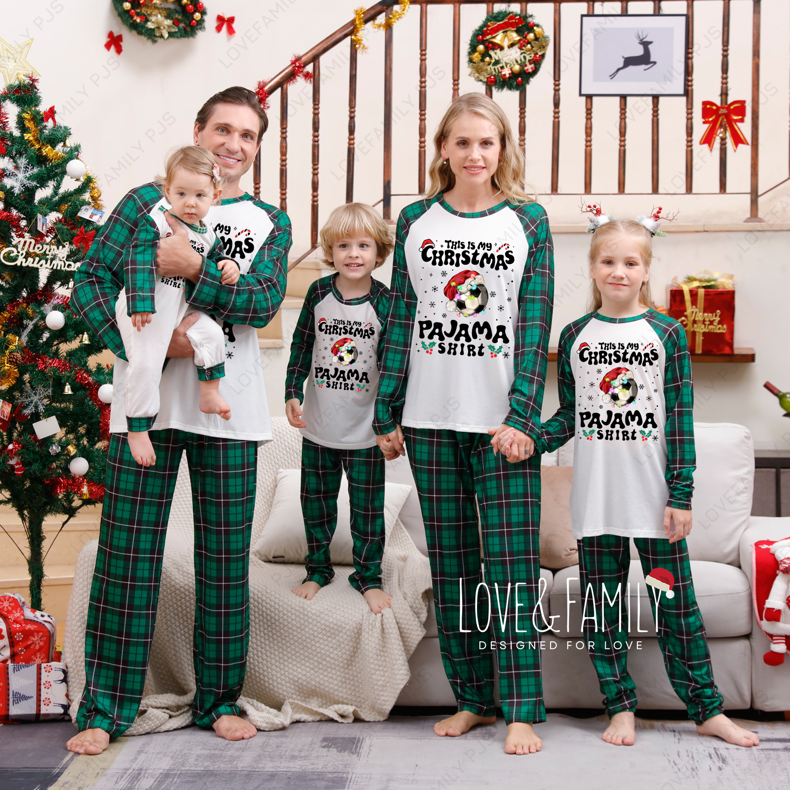 This Is My Christmas Pajamas Shirt Soccer Ball Family Green Plaid Pajamas Set