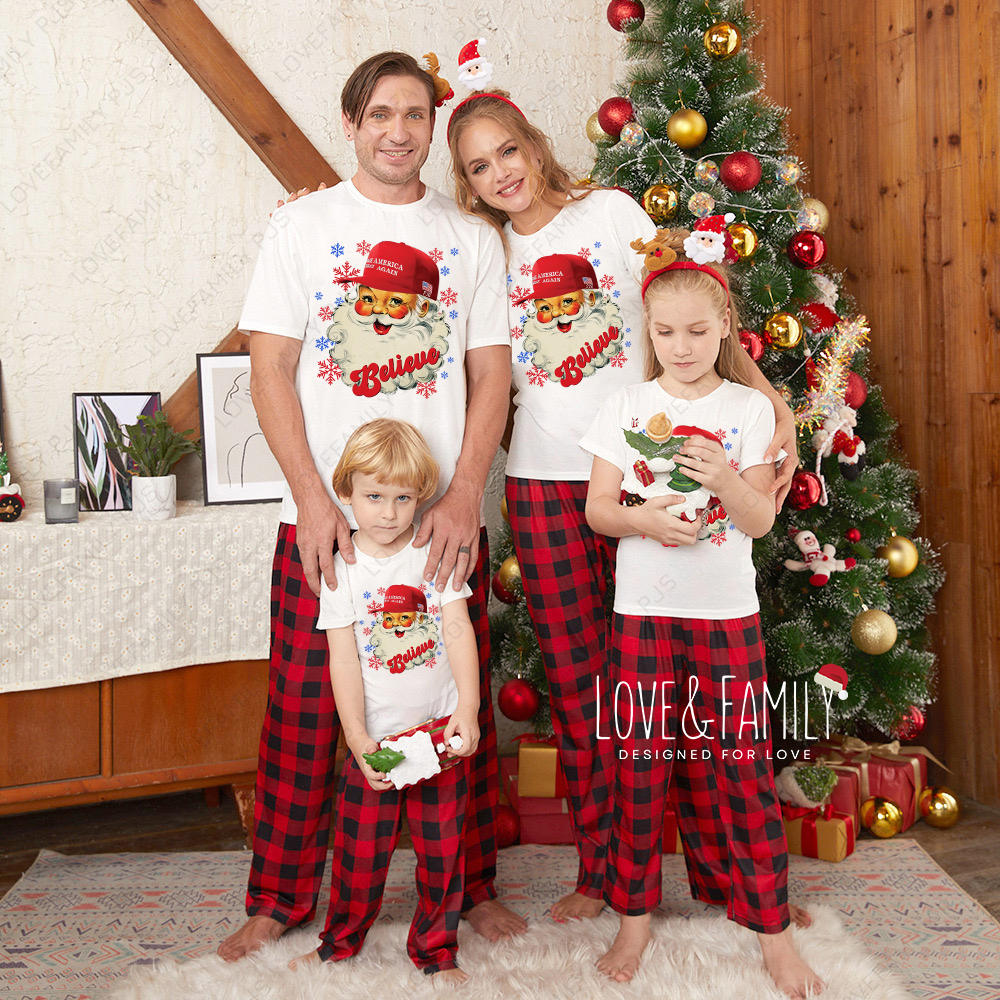 Trump Santa Believe Christmas Matching Pajamas Short Sleeve PJs Sets