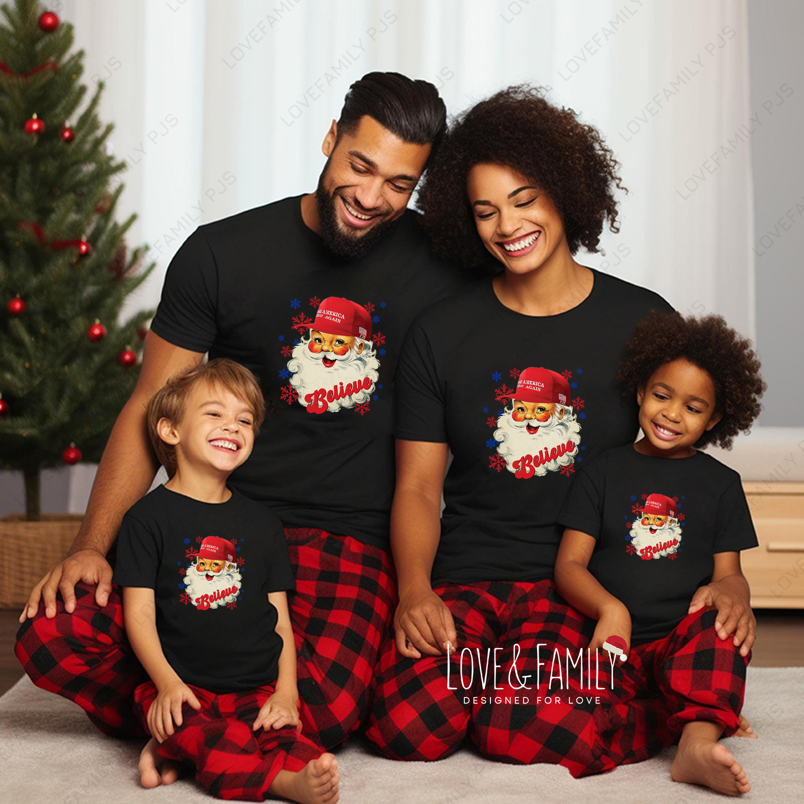 Trump Santa Believe Christmas Short Sleeve Family Matching Pajamas Sets
