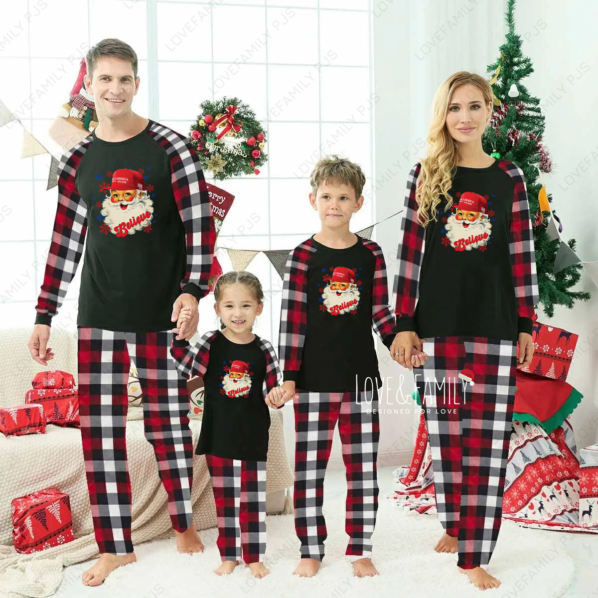 Trump Santa Christmas Family Matching Pajamas Black Plaid PJs Sets