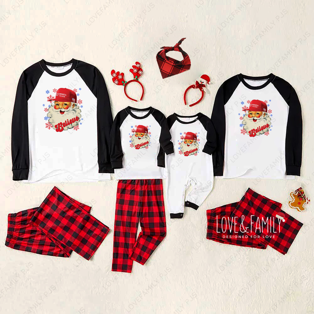 Trump Santa Christmas Family Matching Pajamas Red Plaid PJs Sets