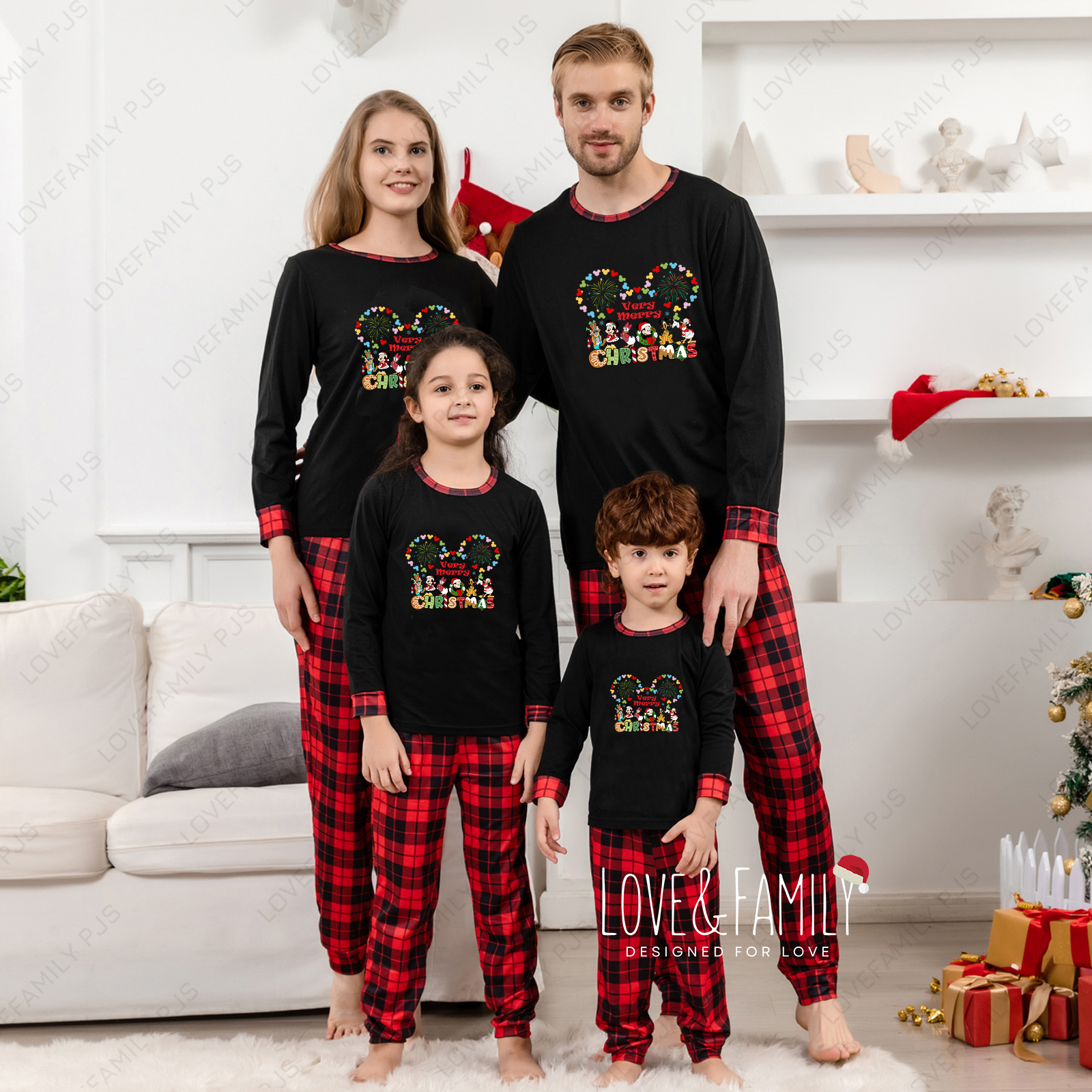 Very Mery Christmas Disney Matching Pajamas Red Black Plaid PJs Sets